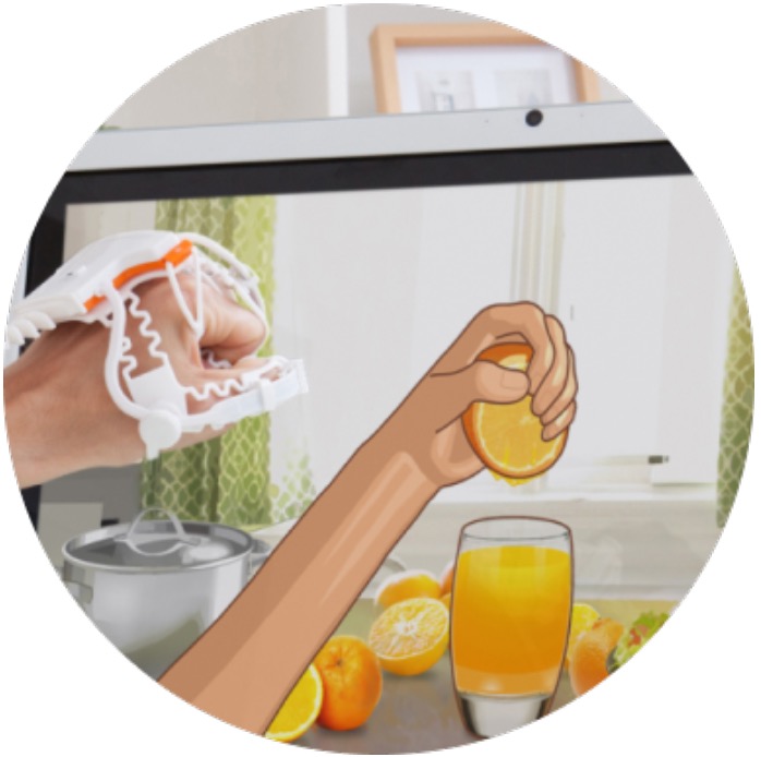 The Neofect Smart Glove is a home exercise tool that tracks movements of the wrist and hand while the user engages in virtual reality based gaming. This device provides a non- invasive, fun way to accomplish high quantities of repetitive movement in a short amount of time.