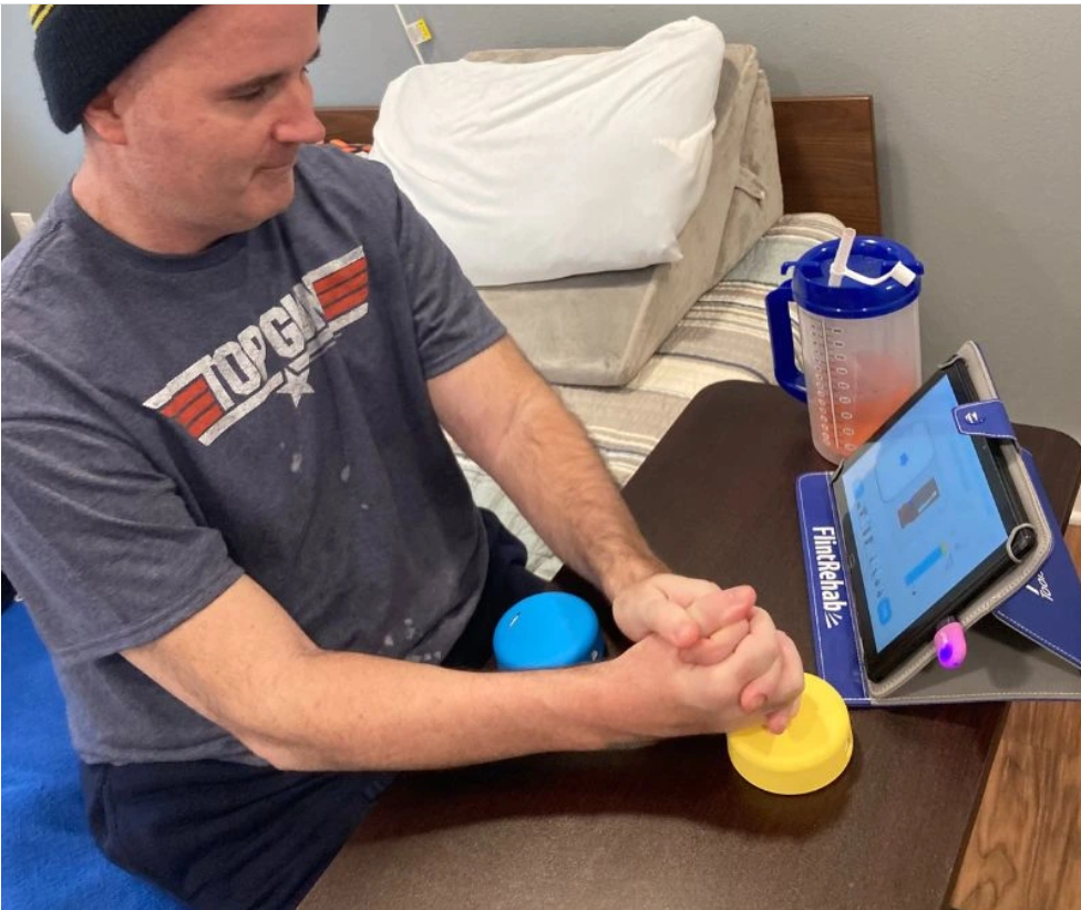 This exercise therapy tool for the clinic helps people with a neurologic injury improve their strength and dexterity.
