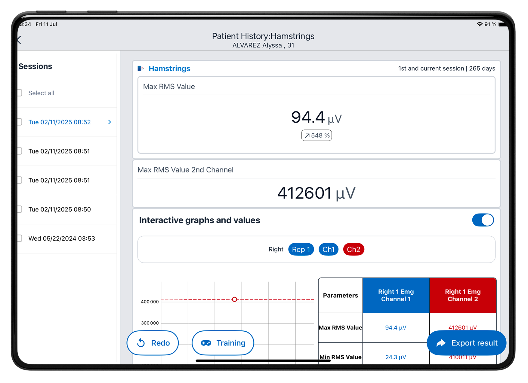 • 即時視覺化、追蹤並比較肌肉表現變化