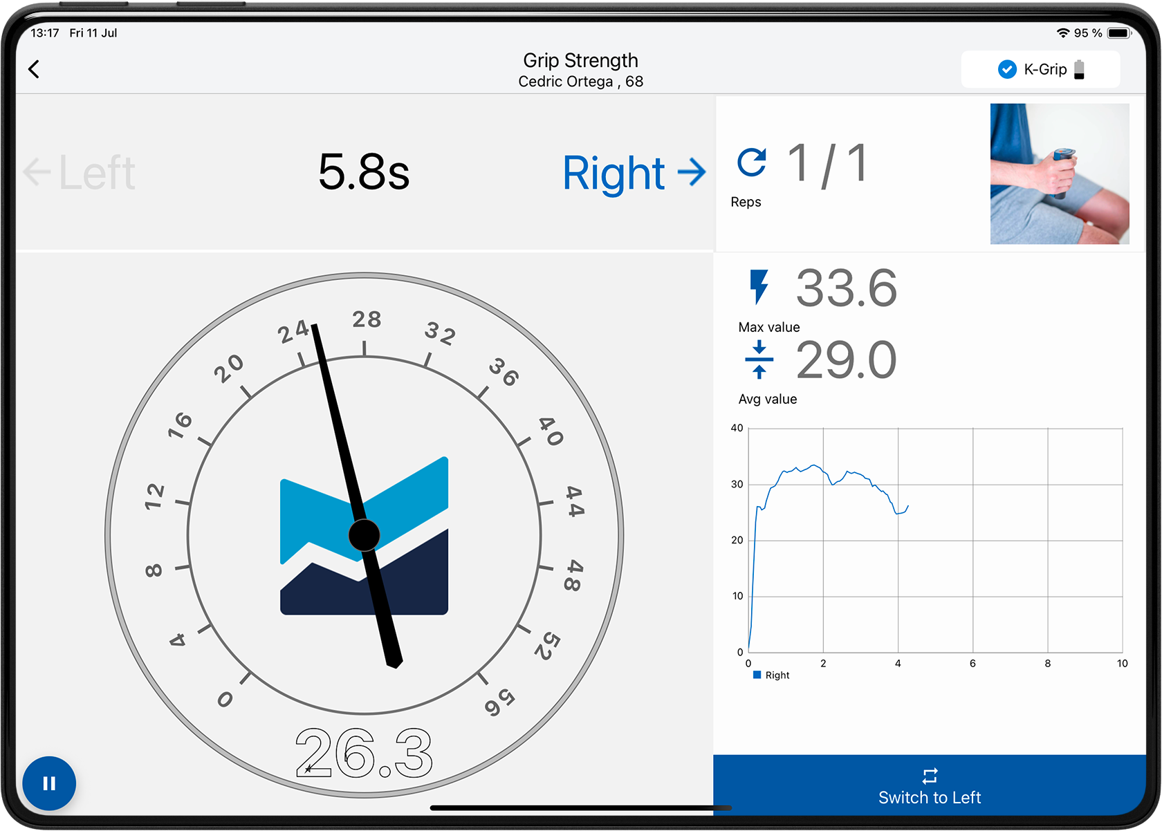 • K-Grip provides instant force readings and integrates seamlessly with the App for real-time biofeedback and progress tracking.